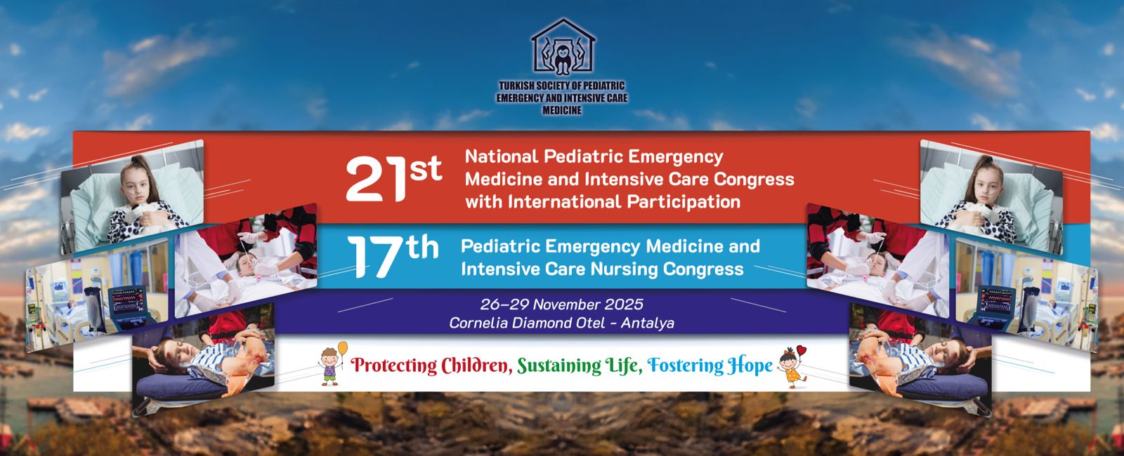 We are pleased to inform you that the Turkish Society of Pediatric Emergency and Intensive Care Medicine will be organizing the 21st National Pediatric Emergency Medicine and Intensive Care Congress with International Participation and the 17th Pediatric Emergency Medicine and Intensive Care Nursing Congress, to be held in Antalya, from November 26 to 29, 2025.